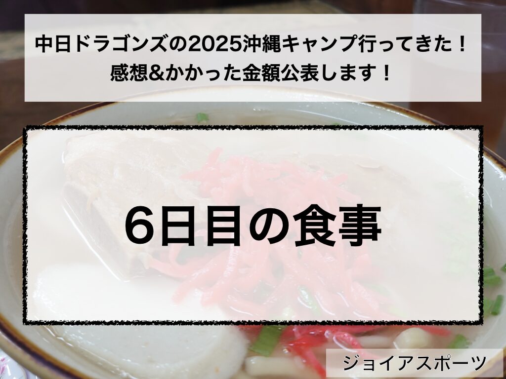 この記事は2025年、沖縄で行われた中日ドラゴンズの春季キャンプに行った行程や金額、感想などを記しているものになります。今回は沖縄滞在6日目に行った朝ごはん・昼ごはん・夕ごはんのお店を紹介していきます。