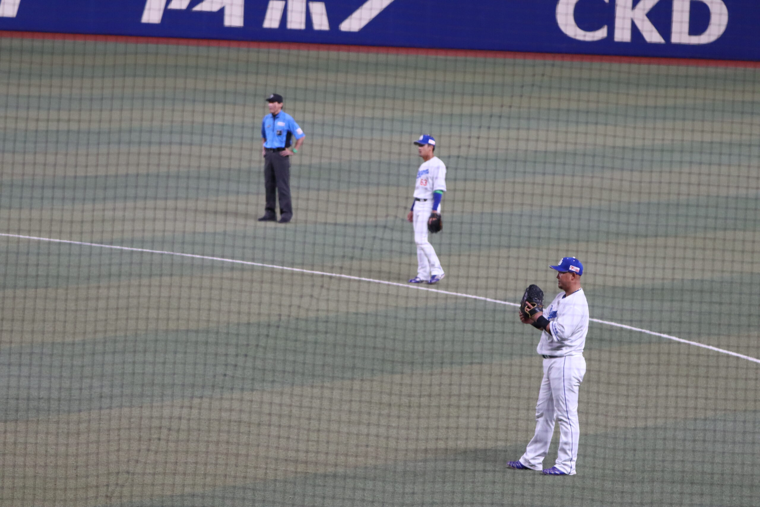 一塁側から撮影 投手 打者 捕手 一塁手 二塁手 三塁手 遊撃手 左翼手 中堅手 右翼手