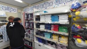 ヤクルトのキャンプ地のグッズ販売はプレハブ小屋の中で行われております。人気選手のタオル等をはじめ、ブルーシールとのコラボグッズやつば九郎のグッズなどが販売されています。各商品の数量は豊富ですが、種類やバリエーションは少ないように感じました。