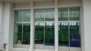屋内多目的運動場はガラス張りですが、防球ネットが張られていますので、かなり見にくい印象です。中で選手がいるのは分かりますが、どの選手が何をやっているかまではわからない場合が多いです。